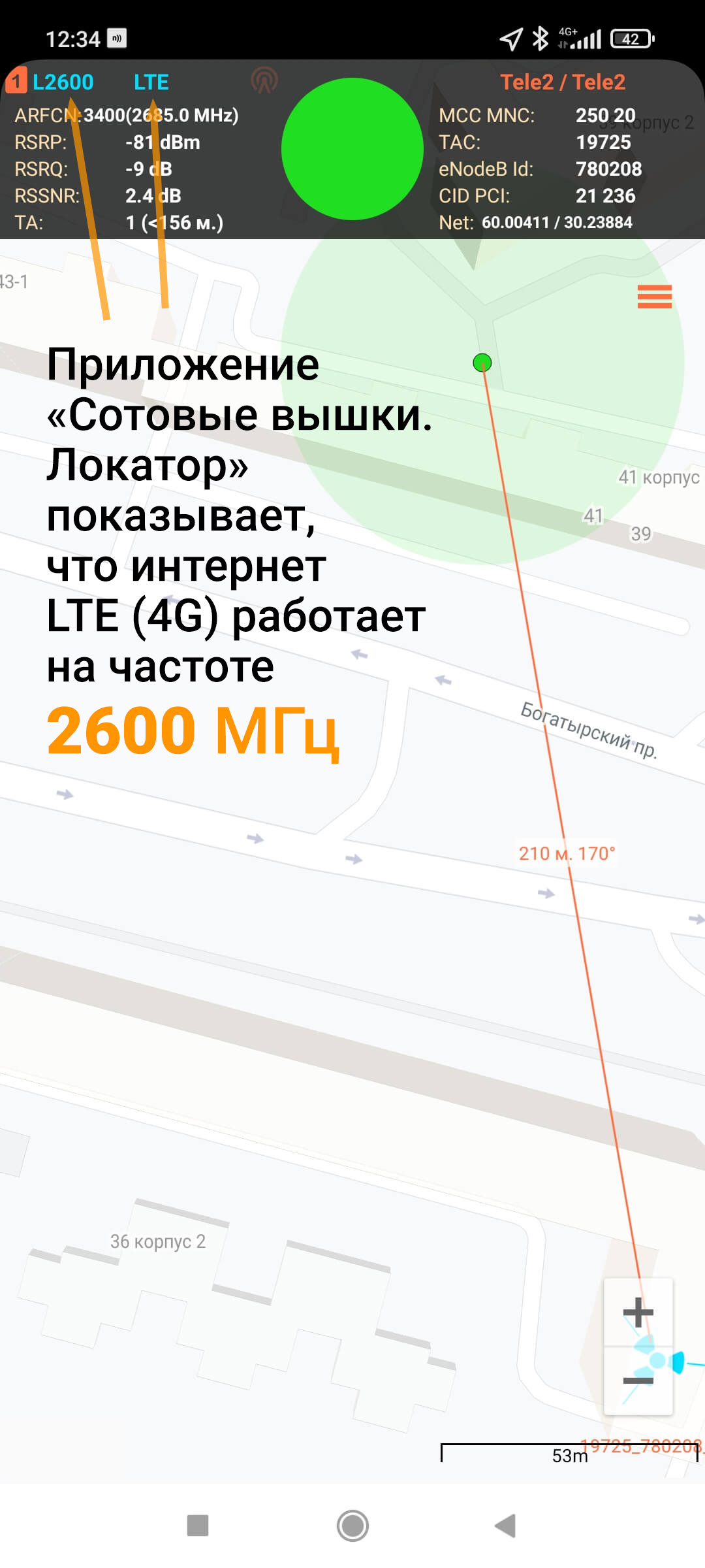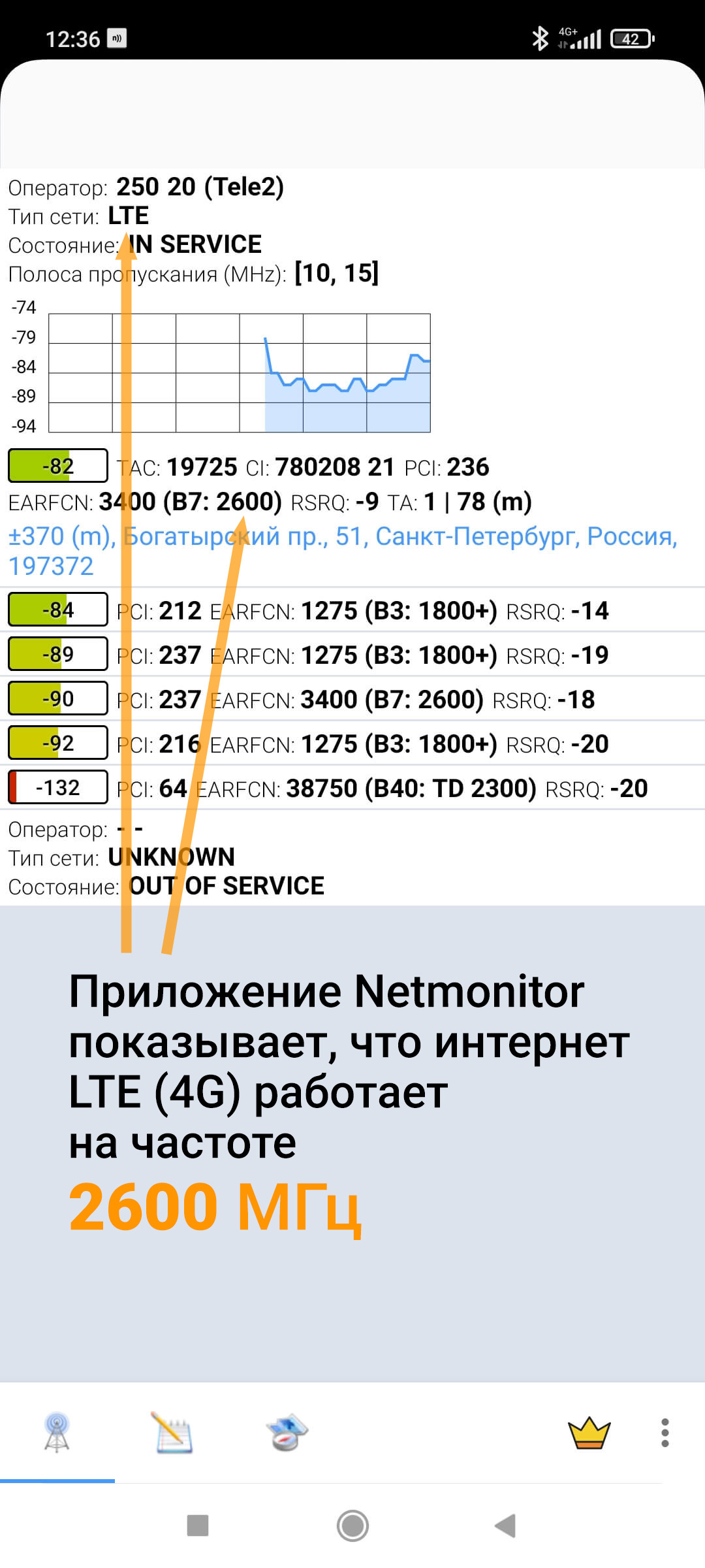 В России используется более 5 частотных диапазонов сотовой связи. Как определить, какой диапазон применяет ваш оператор? Самый простой способ — установить специальное приложение для Android. Наиболее популярные приложения этого типа — Netmonitor и «Сотовые вышки. Локатор». Информация о рабочей частоте отображается на главной странице приложения: