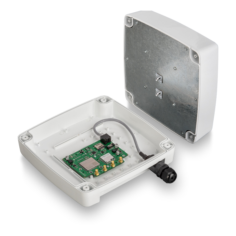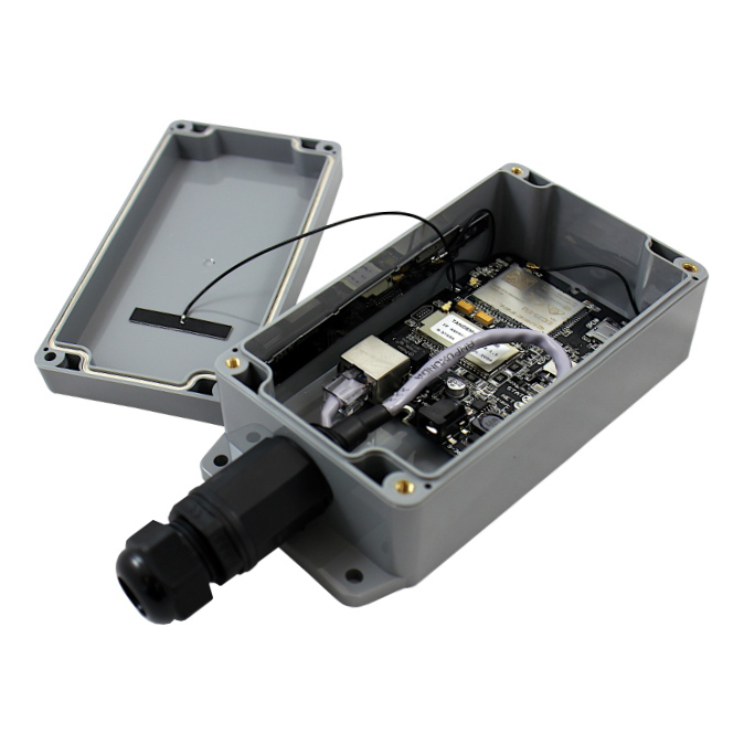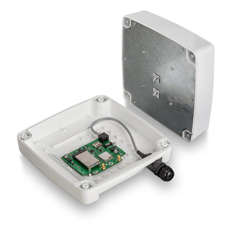Уличный роутер (внешний 4G-клиент) представляет собой сотовую антенну, модем и плату маршрутизатора, которые установлены в одном всепогодном корпусе. Прибор монтируется снаружи здания (в точке наилучшего приема сигнала) и подключается к сотовой сети оператора. Для работы мобильной сети используется отдельная SIM-карта, которая предварительно устанавливается в слот модема.