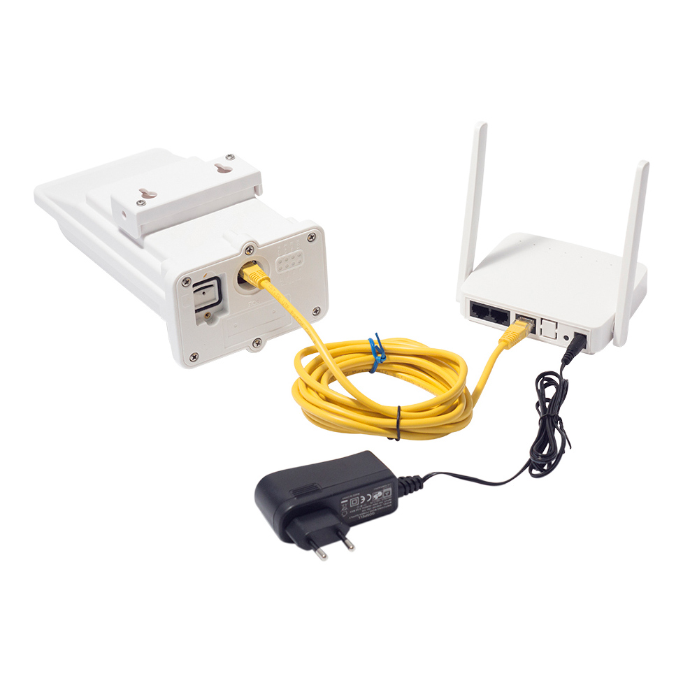 В отличие от репитеров, которые повышают мощность радиосигнала за счет потребления электричества, в уличных роутерах за усиление отвечает исключительно антенна. К прибору подключается обычный патч-корд («витая пара»), который заводится внутрь помещения и соединяется с инжектором питания PoE. Инжектор, в свою очередь, подключается к электрической розетке и вашему сетевому устройству: компьютеру, ноутбуку или обычному WiFi-роутеру.
