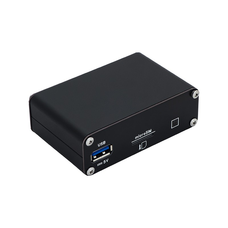 Адаптер выглядит как небольшая черная коробочка. Корпус выполнен из алюминия, а на боковых сторонах размещены разъемы и SIM-слот. Чтобы установить модуль M.2 внутрь корпуса, необходимо выкрутить винты и снять верхнюю крышку. Пигтейлы с антенными разъемами MHF4 уже установлены внутри, так что вам потребуется лишь подключить их к ответным коннекторам на плате M.2.