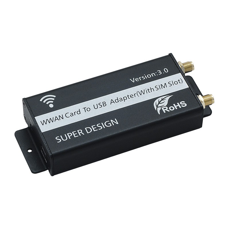 На корпусе адаптера расположен порт Micro-USB для подключения к конечному устройству, два ВЧ-разъема RP-SMA-female для подсоединения съемных антенн, слот для SIM-карты и светодиодный индикатор питания. Подключение адаптера к компьютеру или другому устройству осуществляется при помощи комплектного кабеля Micro-USB — USB.
