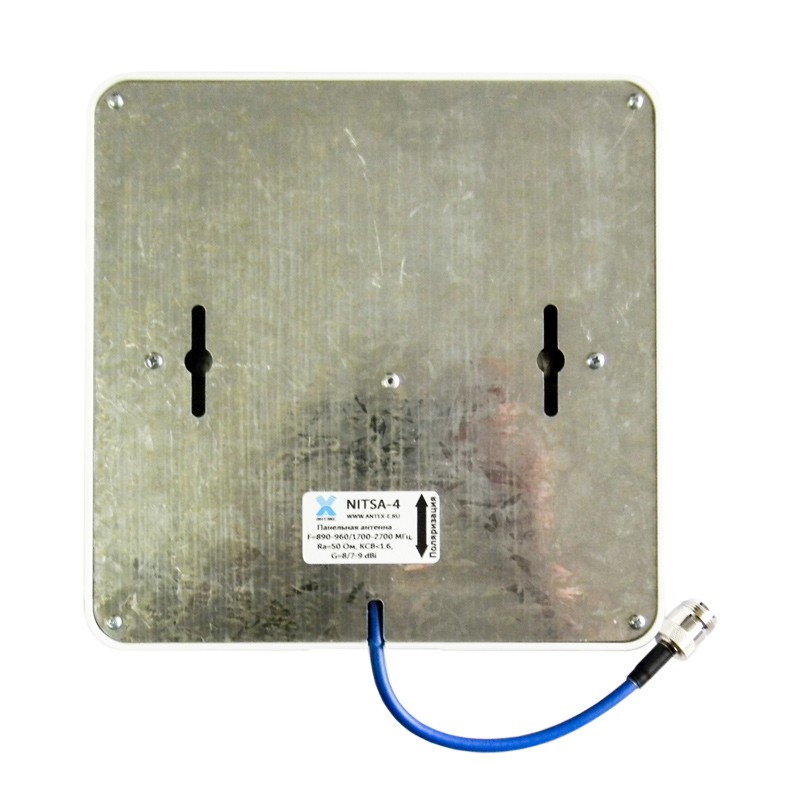Широкополосная антенна панельного типа Nitsa-4 применяется в комплектах усиления сотовой связи GSM, 3G и 4G для передачи сигнала от репитера внутрь здания. Также эта модель может использоваться совместно с роутерами и точками доступа для «раздачи» WiFi на частоте 2,4 ГГц.