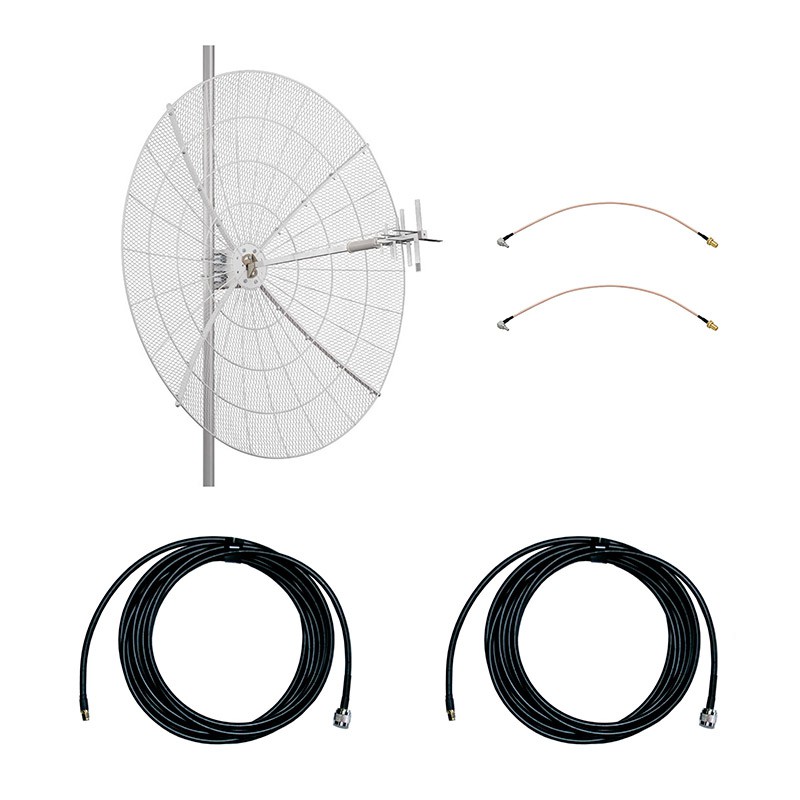 Для соединения антенны с мобильным модемом (например, Huawei E3372) используются две высококачественные кабельные сборки марки 5D-FB и переходники типа CRC9. Два разъема на антенне вместе с двойными наборами кабелей и пигтейлов обеспечивают поддержку технологии MIMO в телекоммуникационных сетях четвертого поколения. Все необходимое оборудование уже включено в комплект поставки!