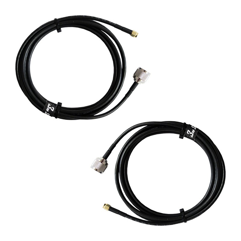 Для подключения к роутеру в наборе используются два коаксиальных провода длиною 3 метра, изготовленные из кабеля марки RG-58. На концах кабелей установлены разъемы N-male (подключение к антенне) и SMA-male (подключение к роутеру). Разъемы хорошо герметизированы. И антенна, и кабели подходят для прокладки на улице.