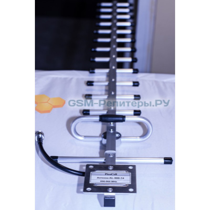Уличная антенна AL-900-14 используется с различными устройствами сотовой связи на объектах, расположенных вдали от базовых станций оператора связи. Антенна позволяет повысить качество мобильной связи GSM-900 при совместной работе с репитером, стационарным GSM-телефоном или шлюзом. Относится к волновым каналам («елочка», антенна Яги-Уда), имеет узкую диаграмму направленности и высокий коэффициент усиления 14 дБи.