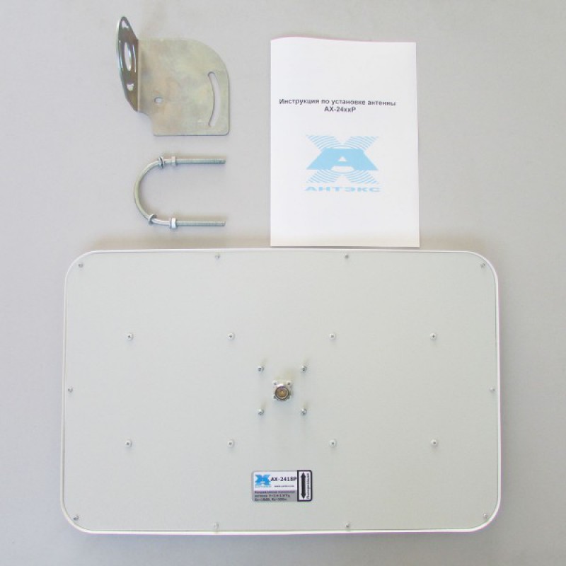 На антенне предусмотрено подключение провода заземления. Крепление позволяет изменять угол наклона антенны. Для подключения AX-2418P необходимо купить кабельную сборку.