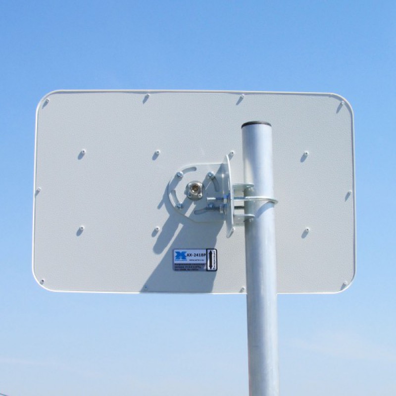 Серия панельных Wi-Fi антенн АX-24XXP предназначена для использования в комплекте оборудования беспроводных систем передачи данных стандарта IEEE 802.11b, g, n (WI-FI). АX-2418P имеет секторную диаграмму направленности и идеально подходит для организации связи «точка-точка». Тип антенны – синфазная полосковая решетка. Активные излучателя Wi-Fi антенны надежно укрыты от осадков в пластиковый корпус.