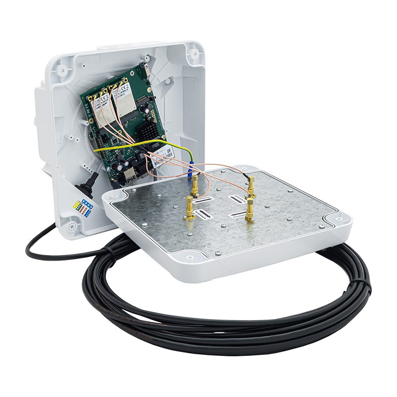 - Поскольку сотовые модули размещены в гермобоксе антенны, потери на коммутации практически отсутствуют. Единственный участок, где используется коаксиальный кабель — это короткие переходники-пигтейлы, соединяющие модемы с антенной;