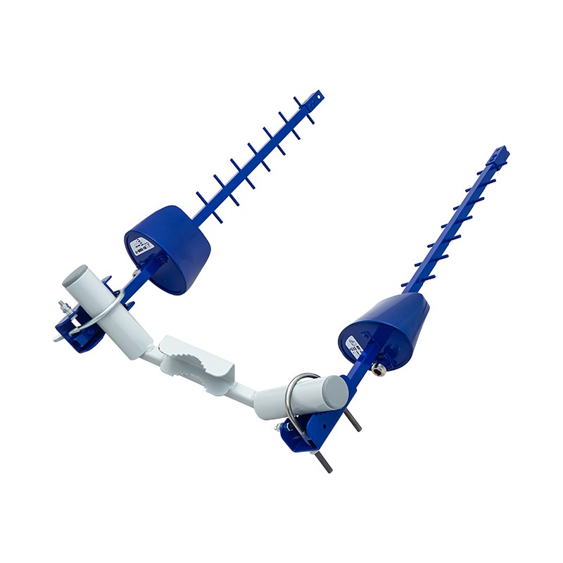 Антенна BS-2600-17 MIMO состоит из двух волновых каналов (елочек), соединенных при помощи кронштейна под прямым углом. Двойная антенная системы подходит для современных 4G-маршрутизаторов и модемов, которые оснащены двумя входами для приема и передачи сигнала. Рабочий диапазон излучателей — 2600 МГц (LTE Band 7).