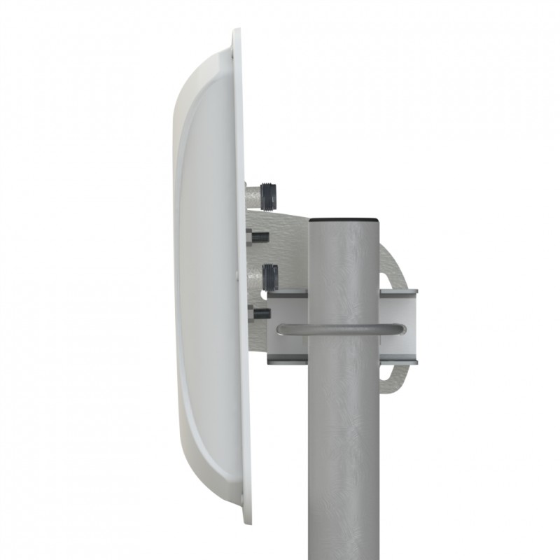 Petra BB MIMO 2x2 поставляется с узлом крепления на кронштейн, трубу или выносную мачту диаметром 20–52 мм. Конструкция крепления поддерживает регулировку в трех плоскостях (угол места, азимут, наклон поляризации), что позволяет точно настроить устройство в направлении ближайшей базовой станции оператора.