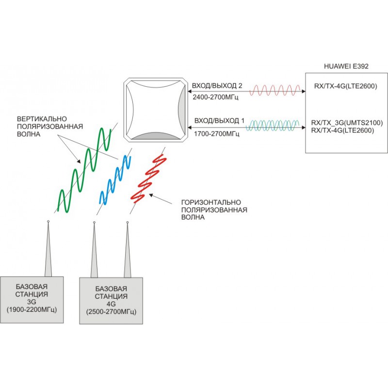 | Поляризация | вертикальная+горизонтальная / X-pol |