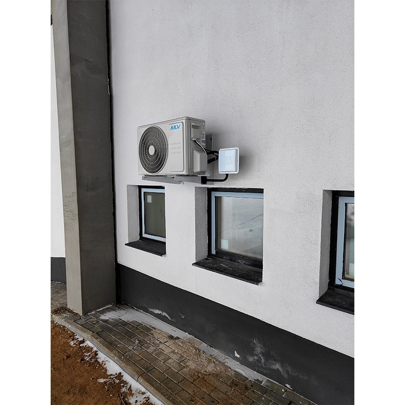 В комплект входит металлический узел крепления на трубостойку Ø20–52 мм. Чаще всего опорой служит фасадный кронштейн. При необходимости разместить излучатель на большой высоте, применяются выносные мачты.
