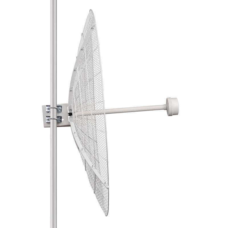 Сетчатая структура отражателя снижает парусность и позволяет устанавливать антенну даже на высоких выносных мачтах, не опасаясь порывов ветра. Стандартное мачтовое крепление позволяет менять угол наклона и азимут, точно подстраивая антенну под источник сотового сигнала.