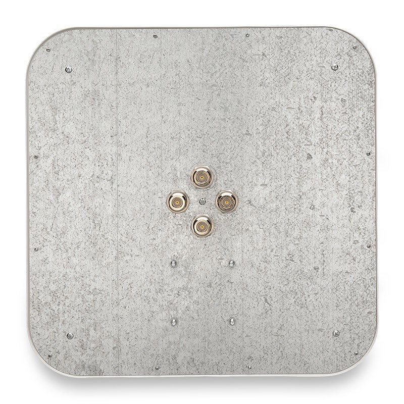 На обратной стороне антенны KAA9-600/5000 размещены 4 коннектора N-female для подключения кабелей снижения, ведущих к модему или 4G/5G-роутеру. Многоканальный режим MIMO 4x4 позволяет задействовать сразу 4 канала передачи данных, разнесенных пространственно и поляризационно. Два выхода антенны имеют вертикальную поляризацию, а два — горизонтальную.