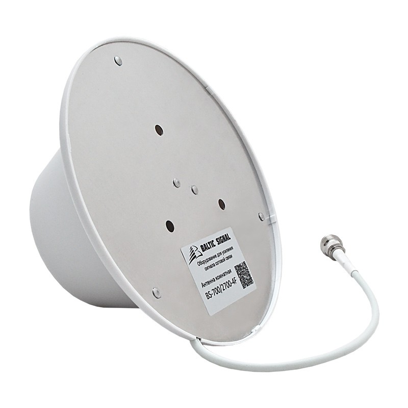 Антенна BS-700/2700-4F обладает коэффициентом усиления 3–5 дБ, что обеспечивает качественное распространение сотового сигнала в офисе, дома или в технических помещениях (на крытой парковке, в гараже, мастерской). Антенна может применяться как в отапливаемых, так и в неотапливаемых помещениях.