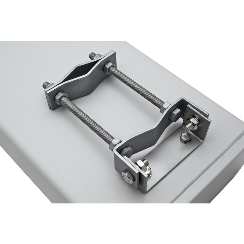 - Прочное стальное крепление гарантирует надежную фиксацию на опоре, а герметичный корпус (IP67) позволяет эксплуатировать антенну без дополнительной защиты от осадков. Качественный пластик корпуса выдерживает перепады температуры в диапазоне от -45°С до +70°С;