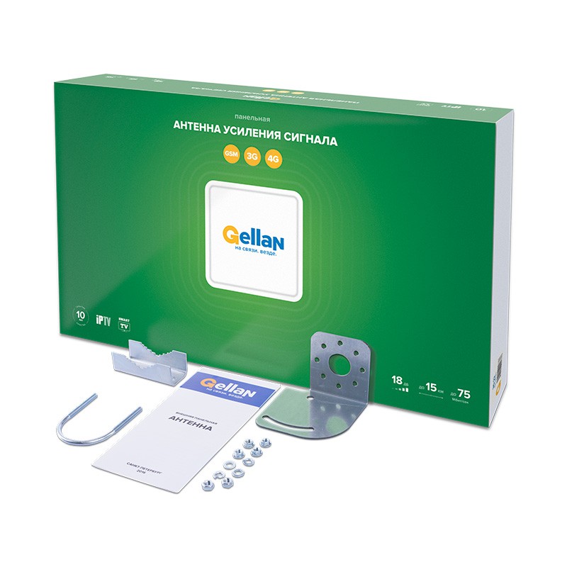 Антенна Gellan 3G-18 усиливает сигнал 3G с коэффициентом в 18 дБ.