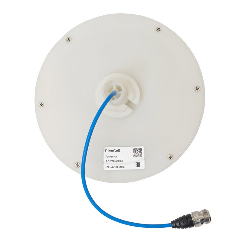 Широкополосная потолочная антенна AO-700/4000-6 от фирмы PicoCell используется для распространения сотового сигнала или WiFi-сети внутри здания. Благодаря поддержке широкого диапазона частот 698–4200 МГц, антенна является многозадачной и может использоваться совместно с мультидиапазонными репитерами (GSM, 3G, 4G, некоторые бэнды 5G) или точками доступа WiFi.