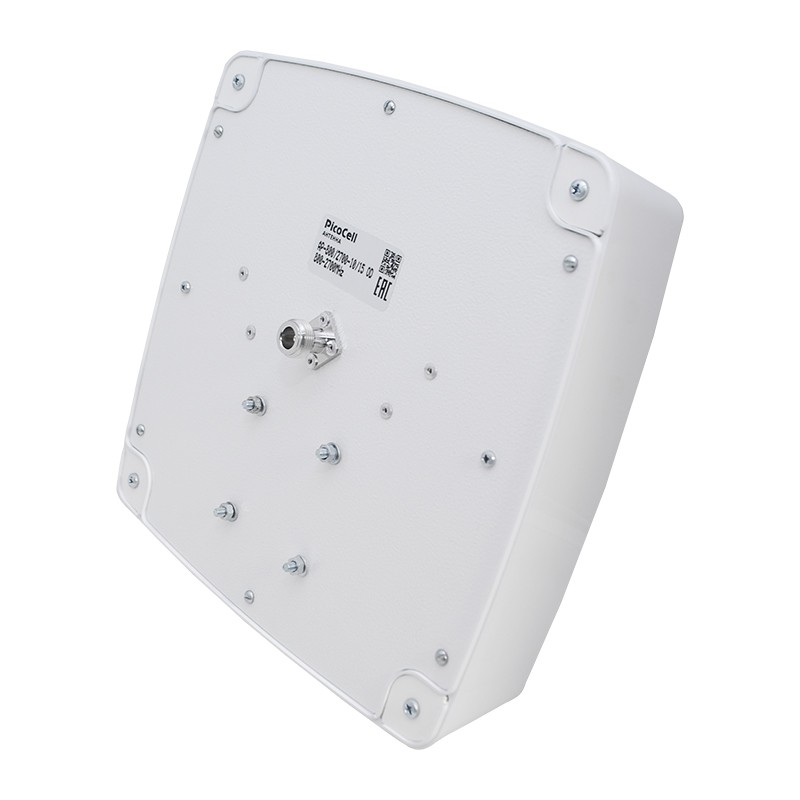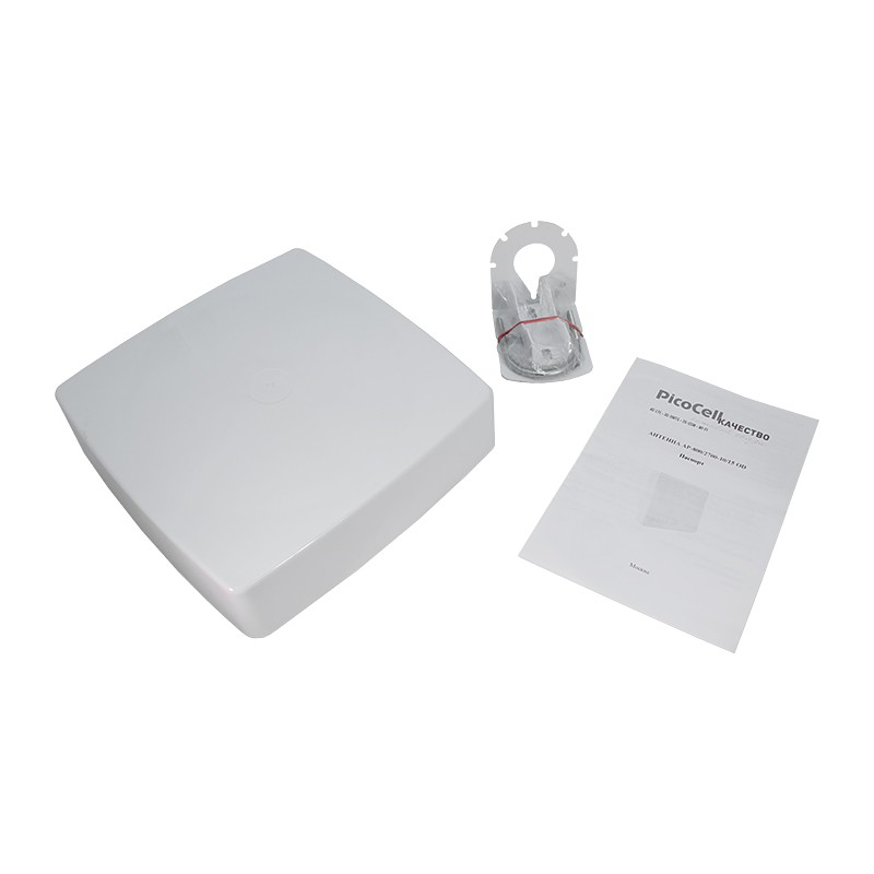 Излучающие элементы панельной антенны защищены корпусом из АБС-пластика, который устойчив к солнечному свету и перепадам температуры. Диапазон рабочих температур находится в промежутке от -40°C до +60°C. Внешние габариты антенны составляют всего 250 х 250 х 100 мм. Комплектный узел крепления позволяет закрепить излучатель на любой круглой опоре (до Ø50 мм), включая фасадный кронштейн, выносную мачту или обычный металлический столб.