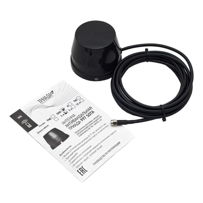 Триада SOTA 997 — популярная автомобильная антенна с магнитным основанием, поддерживающая наиболее распространенные стандарты GSM и 3G. Антенна оснащена интегрированным кабелем длиною 3 м со стандартным разъемом SMA-male и предназначена для подключения к мобильным роутерам, усилителям сотовой связи, GSM-терминалам и другим активным радиоустройствам. Поддерживаются частотные диапазоны 900, 1800, 2100 МГц.