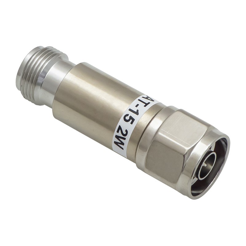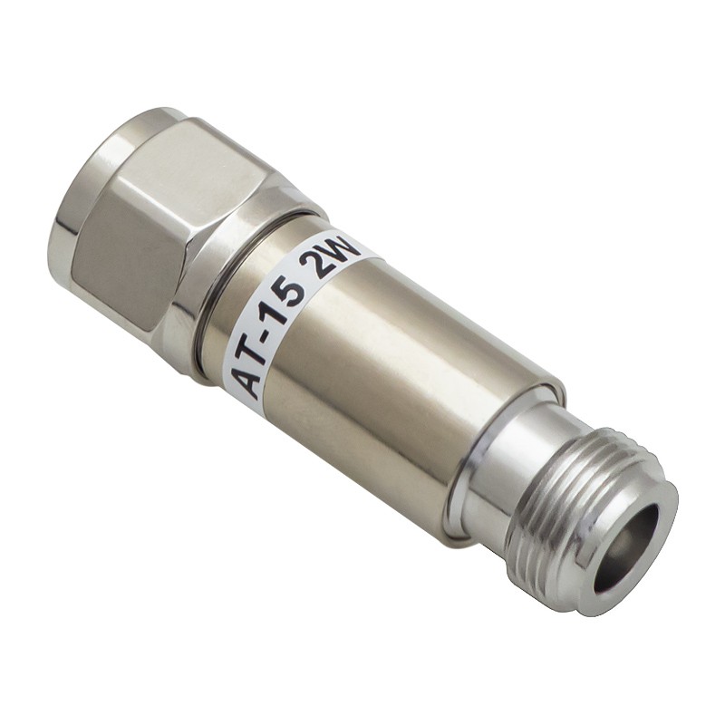 Аттенюатор AT-15 — девайс для ограничения мощности ВЧ-сигнала с фиксированным коэффициентом ослабления 15 дБ. Аттенюатор является пассивным элементом ВЧ-системы, который подключается непосредственно к устройству или в разрыв кабельной трассы. Предлагаемая модель работает с радиосигналом частотой до 3 ГГц и поддерживает проводимую мощность 2 Вт.