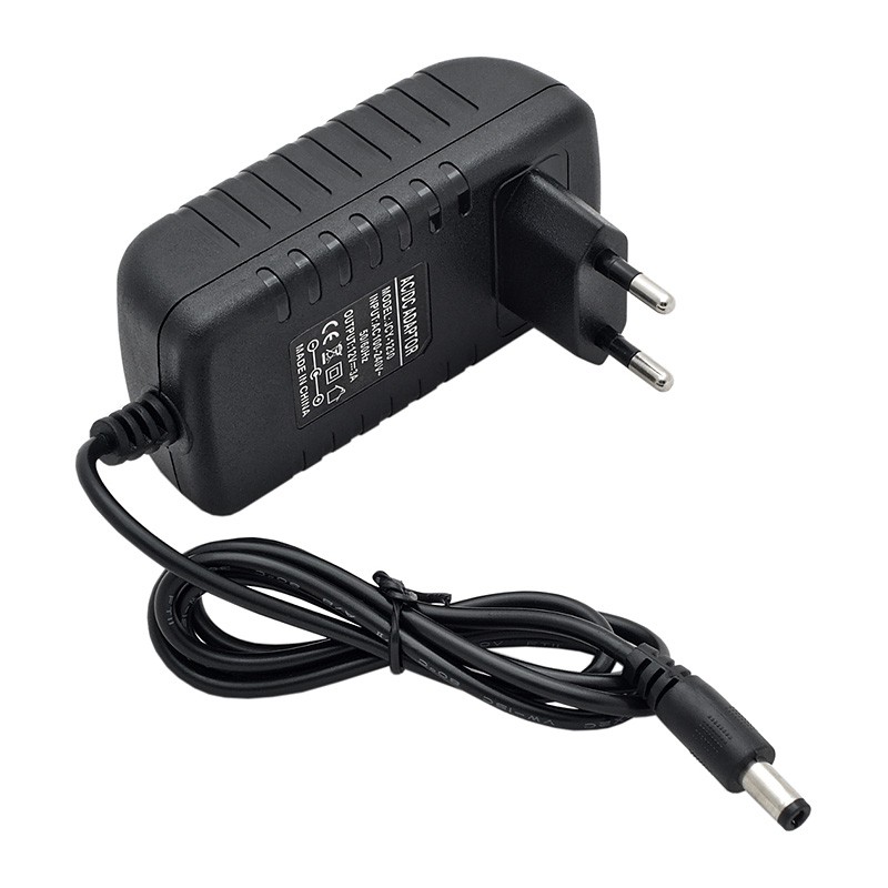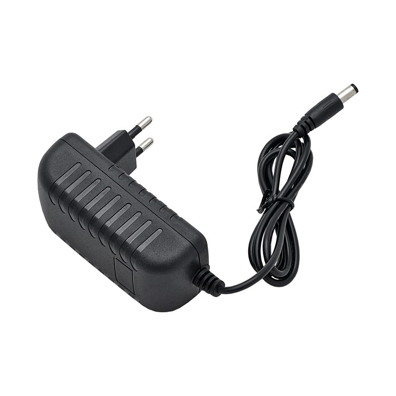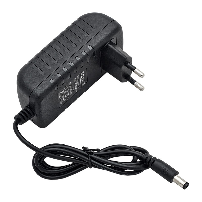 Блок питания объединен с евровилкой в одной корпусе и имеет интегрированный кабель длиною около 90 см. На конце кабеля размещен стандартный DC-коннектор (5,5 x 2,5 мм). Адаптер предназначен для работы только внутри помещений.