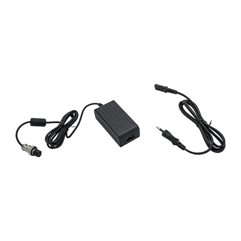 Блок питания оснащен кабелем длиною 1,5 м с розеткой GX16-2P. В комплект поставки включен кабель питания с евровилкой, который подсоединяется к БП при помощи разъема C7 («восьмерка»). Длина кабеля питания также составляет 1,5 м.