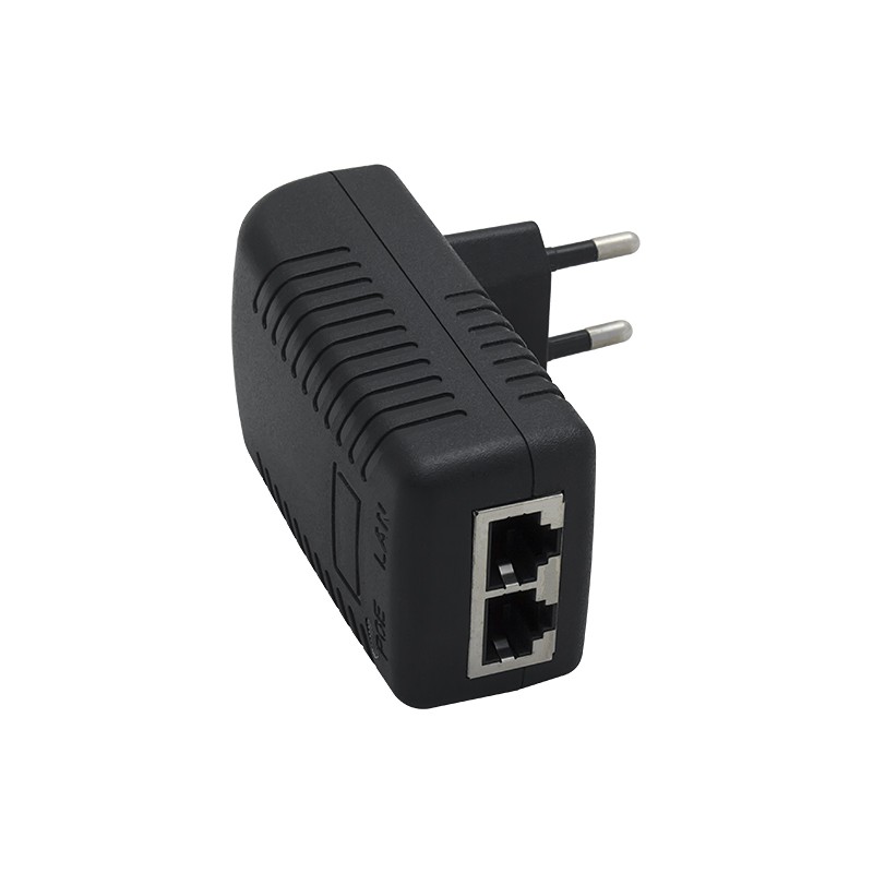 Инжектор совмещен в одном корпусе с электрической вилкой и вставляется непосредственно в розетку. В нижней части корпуса размещены два разъема RJ-45. Порт LAN соединяется с участком локальной сети или конечным сетевым прибором, а разъем POE — с устройством, на которое подается питание. Таким образом, инжектор буквально «подмешивает» электричество в линию, по которой передаются данные, и позволяет использовать один кабель для решения двух задач.