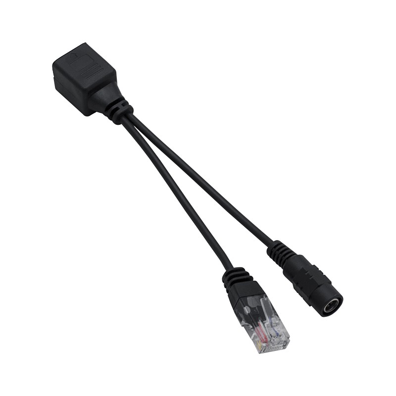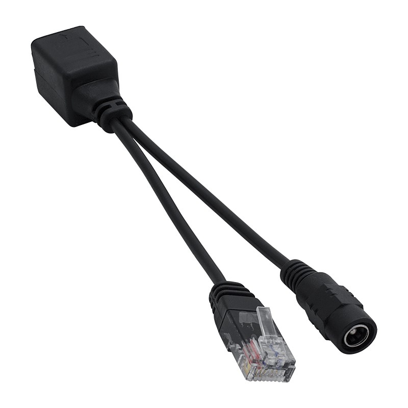 - Вилка RJ-45 для передачи данных (LAN), без напряжения. Используется для соединения питаемого устройства с последующим звеном сети (сетевой платой компьютера, коммутатором, роутером и т. п.);
