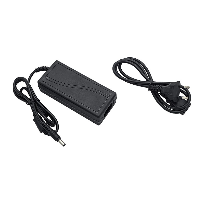 Блок питания оснащен интегрированным кабелем с DC-коннектором 5,5 x 2,5 мм. Общая длина двух кабелей составляет 2 м. Обеспечена совместимость с типичными стеновыми розетками, распространенными в России, странах СНГ и Европы.