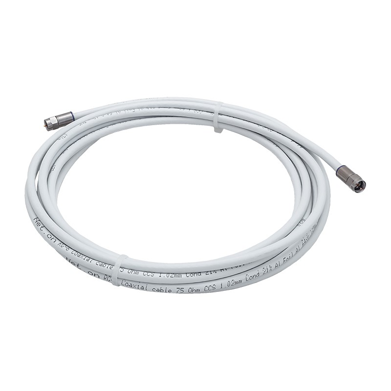 Коаксиальная сборка длиной 5 метров из кабеля RG-6 с разъемами F-male используется для подключения оборудования эфирного и спутникового телевидения, а также в системах видеонаблюдения и усиления сотовой связи с сопротивлением 75 Ом.