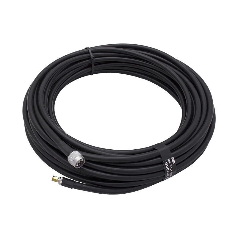 Отрезок коаксиального кабеля 8D-FB протяженностью 20 метров для подключения ВЧ-устройств. На концах провода установлены наконечники N-male и SMA-male, совместимые с многочисленными комнатными и уличными антеннами, сотовыми ретрансляторами, маршрутизаторами и модемами.