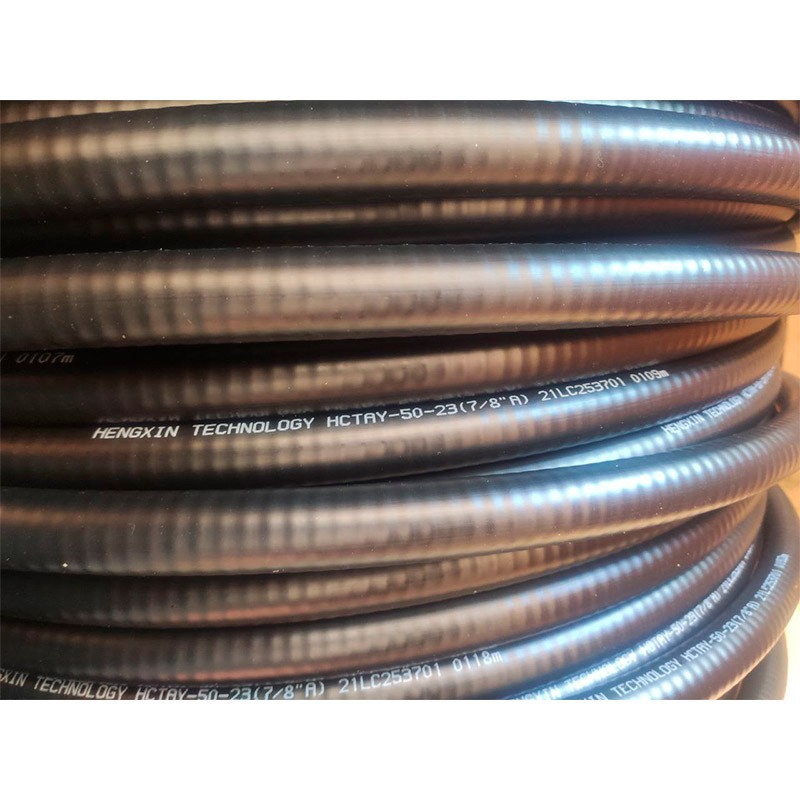 - Наружная оболочка выполнена из полиэтилена черного цвета, общий диаметр кабеля — 27,8 мм. Также в продаже доступна версия HCTAYZ-50-23 с негорючей безгалогенной оболочкой.