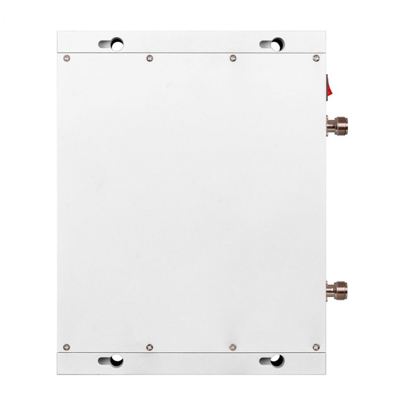 Устройство имеет металлический корпус белого цвета с оребрением по внешним сторонам для более качественного охлаждения внутренних элементов системы. На торце расположен небольшой экран с кнопками ручной регулировки, индикаторы состояния устройства, антенные разъемы, порт для подключения питания, клавиша включения и клемма заземления. Репитер имеет четыре отверстия в корпусе для быстрого монтажа.