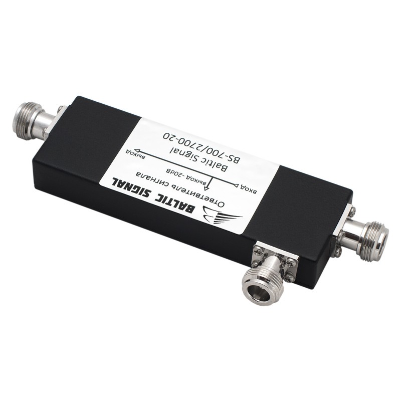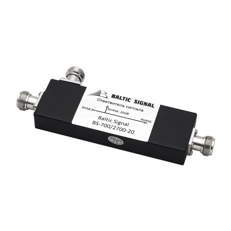BS-700/2700-20 — неравномерный делитель ВЧ-сигнала на две части от отечественного производителя Baltic Signal. Ослабление сигнала на боковом выходе составляет 20 дБ, то есть поступающий на него сигнал будет в 100 раз слабее основного (магистрального).