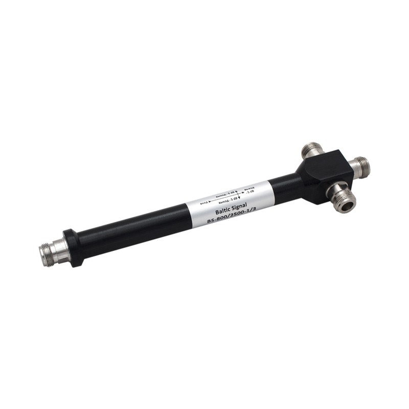 Сплиттер BS-800/2500-1/3 для равномерного деления ВЧ-сигнала в частотном диапазоне 800–2500 МГц на три части.