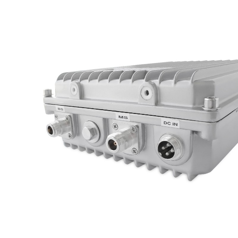 Все внутренние компоненты помещены в защитный бокс серого цвета. Основные разъемы выведены на поверхность внешнего стального кожуха. Для настройки параметров используются не механические кнопки, а специальная компьютерная программа и подключение через цифровой разъем Micro-USB. Также на основном корпусе репитера имеются светодиодные индикаторы, обозначающие текущую мощность устройства, статус работы системы автоматической регулировки, наличие «закольцовки» и многое другое. Вместе с репитером покупатель получает кабель Micro-USB, блок питания, гарантийный талон и руководство пользователя на русском языке.