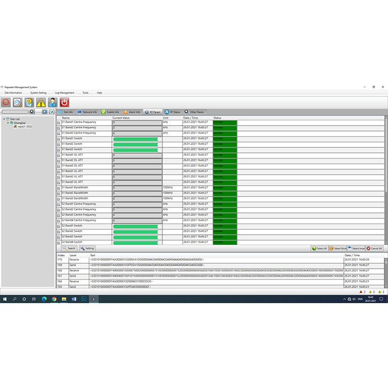 Репитер не имеет средств регулировки на корпусе и настраивается с помощью компьютера. Подключение к компьютеру производится посредством Ethernet-разъема на передней панели, скрытого за защитной крышкой. При помощи программы пользователь может включить или отключить усиление в поддиапазонах и настроить их ширину с точностью до 100 кГц.
