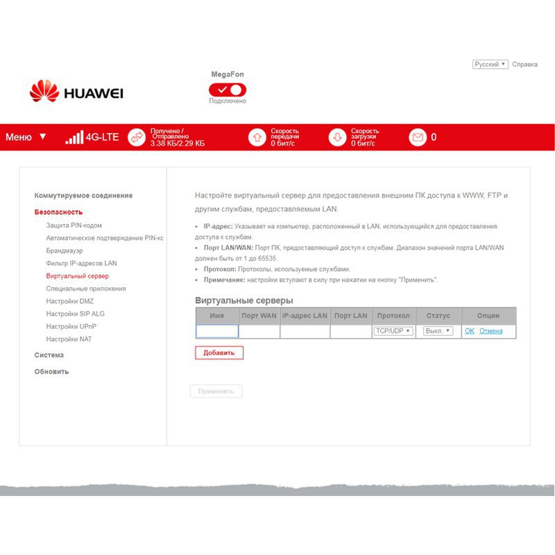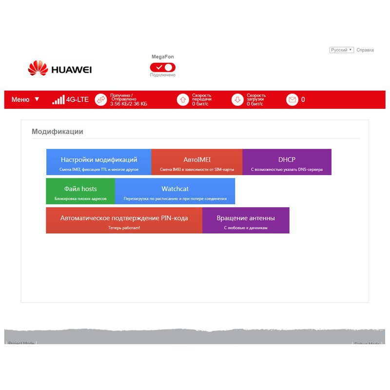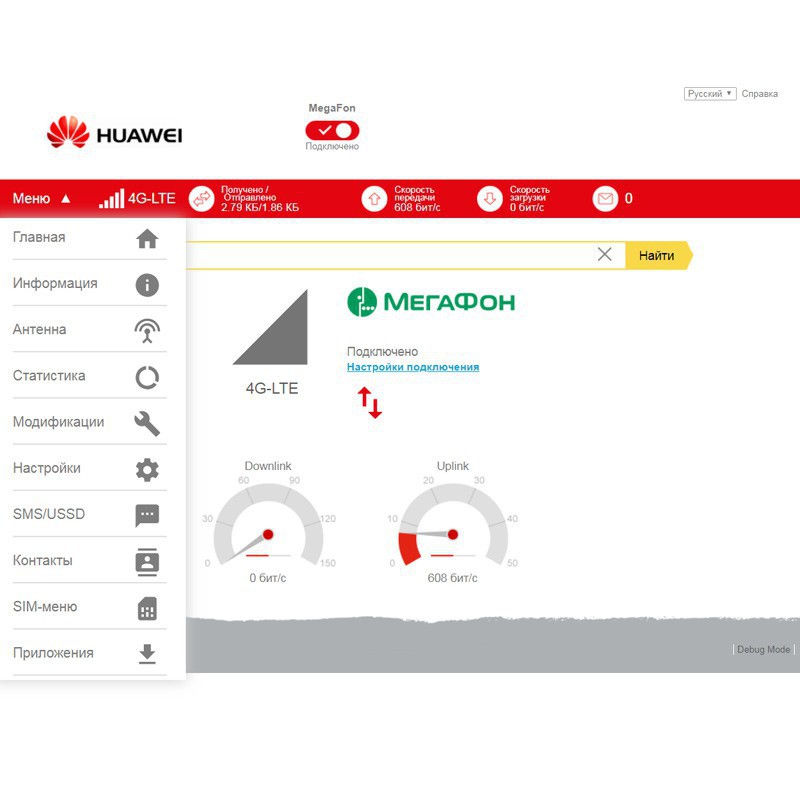 Представленное устройство поддерживает распространенные стандарты 3G/4G-интернета — UMTS-2100, LTE1800, LTE2600 и многие другие. Соответствие категории LTE Cat. 4 обеспечивает скорость загрузки данных в 4G-сетях до 150 Мбит/с. Модем оснащен двумя разъемами CRC9 для внешних антенн (приобретаются отдельно), что позволяет существенно улучшить качество приемопередачи и использовать E3372, например, на даче. Применять внешние антенны рекомендуется в условиях слабого входящего сигнала от базовых станций.