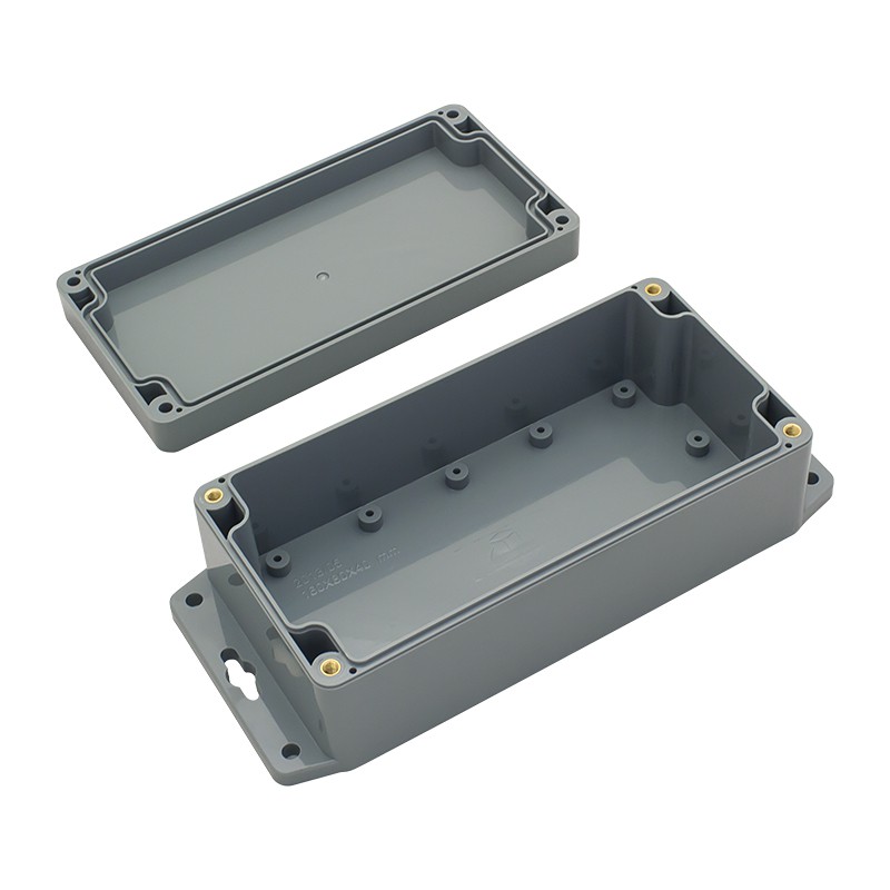 Корпус выполнен из высокопрочного пластика ABS темно-серого цвета. Глянцевый (отражающий) характер материала делает этот бокс внешне привлекательным и престижным. Водо- и пылезащищенность IP65 гарантирует, что интегрированное оборудование может использоваться как в помещениях, так и на открытых территориях при воздействии влаги и солнца. Эта модель используется для изготовления приборов для автомобилей и водного транспорта.
