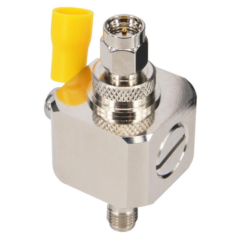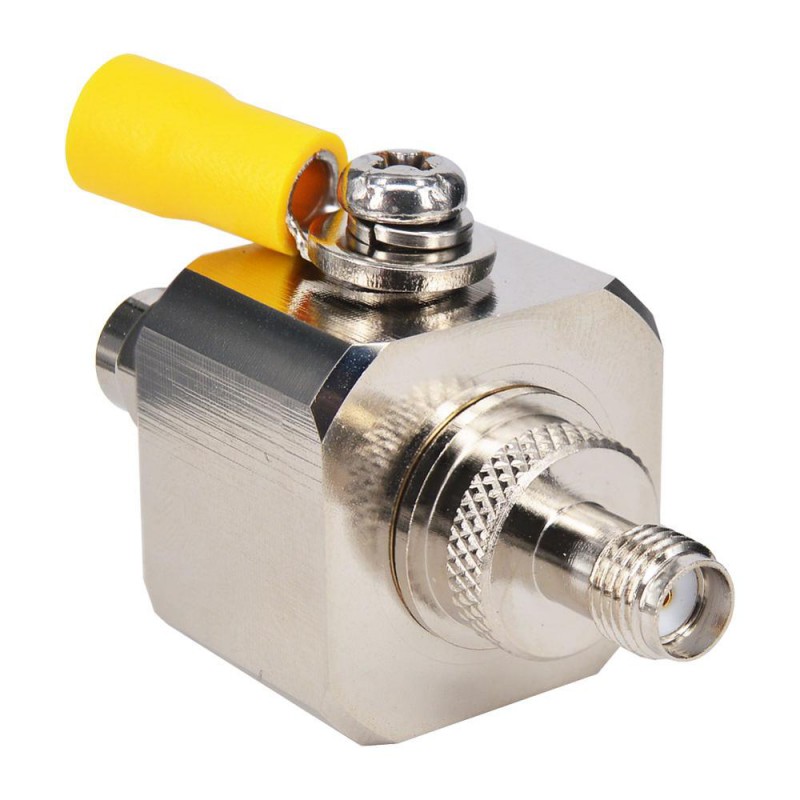 Компактное и эффективное устройство для защиты оборудования от опасных электростатических зарядов, накапливаемых во время грозы. Модуль грозозащиты с разъемами SMA устанавливается в качестве переходника между уличной антенной и активным ВЧ-устройством и соединяется с контуром заземления. В качестве основного управляющего элемента, отводящего заряд на «землю», выступает газонаполненный капсюль, который может быть заменен на аналогичный в процессе продолжительной эксплуатации модуля.