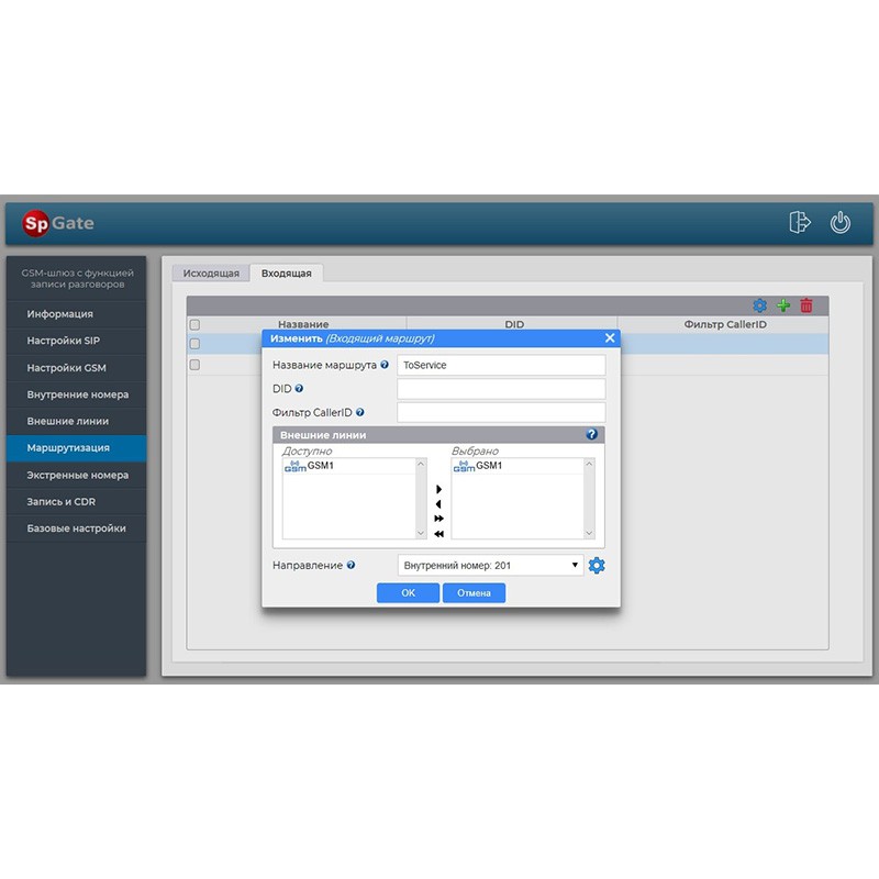 - подключение мобильного телефона к шлюзу для обработки вызовов через приложение SpRecord Phone для Android;