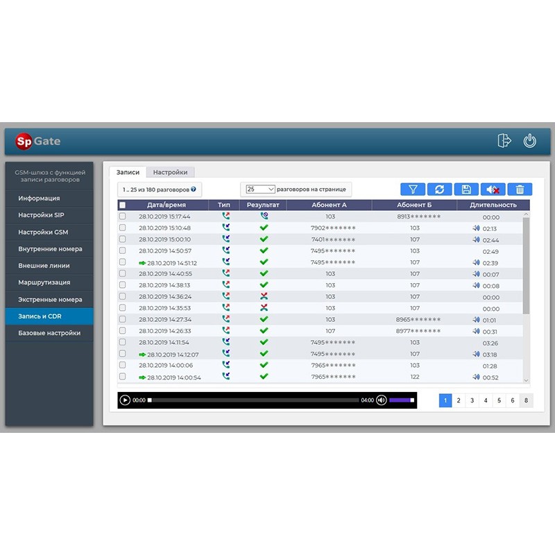 Запись разговоров - для активации приобретите Модуль записи SpGate GI (лицензия на 1 канал):