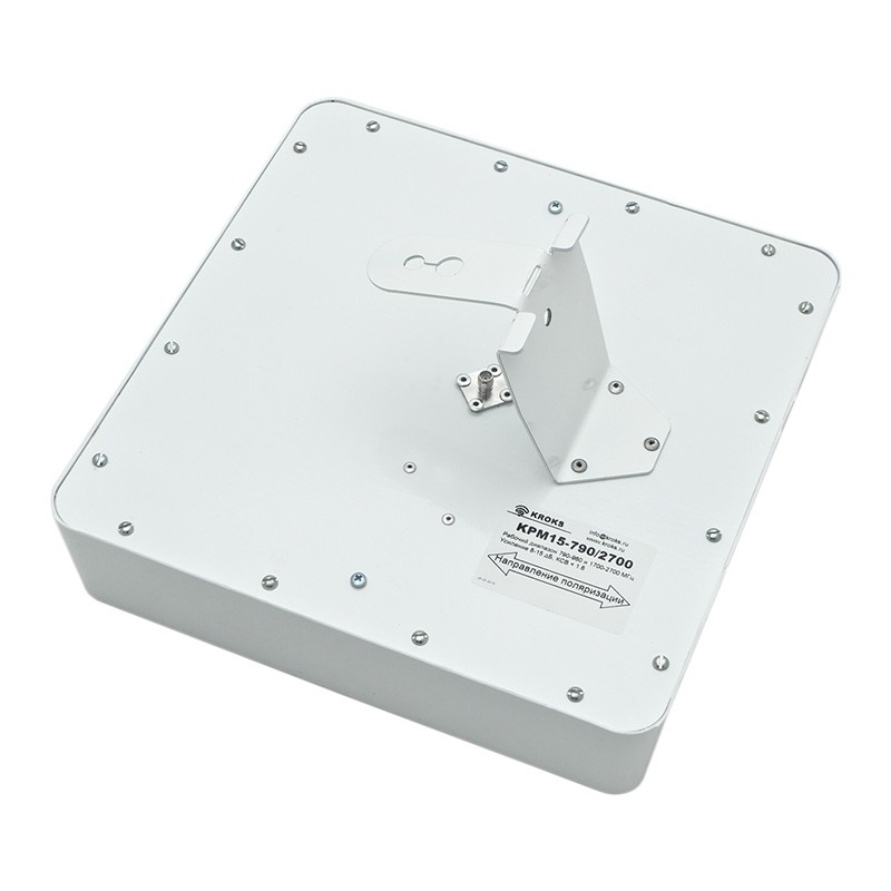 Антенна может работать в двух частотных диапазонах: 790–960 МГц и 1700–2700 МГц, что покрывает потребности при анализе сигнала стандартов GSM/2G, 3G, 4G и WiFi (на частоте 2,4 ГГц). Заявленный коэффициент усиления Kroks КРМ-790/2700 при работе на частотах 790–960 МГц достигает 8 дБи, в диапазоне 1700–2700 МГЦ — до 15 дБи. По типу исполнения антенна КРМ-790/2700 является панельной направленной.