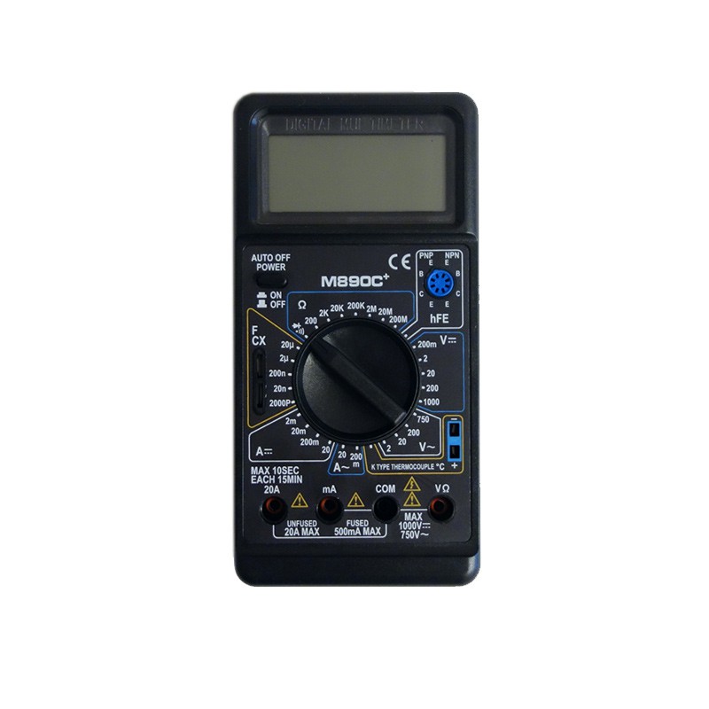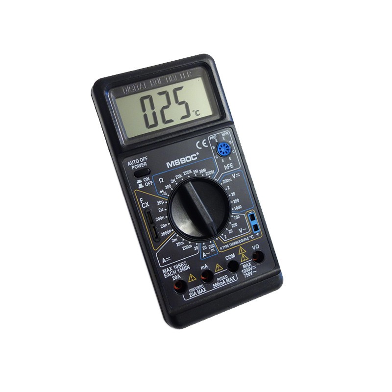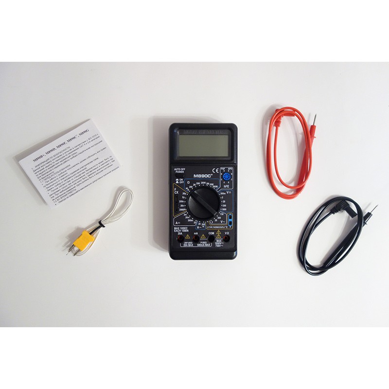 M-890C+ — многофункциональный цифровой мультиметр для измерения напряжения, силы тока, сопротивления и других физических характеристик. M-890C+ предназначен для диагностики оборудования, электрических цепей и различных радиоэлектронных компонентов.