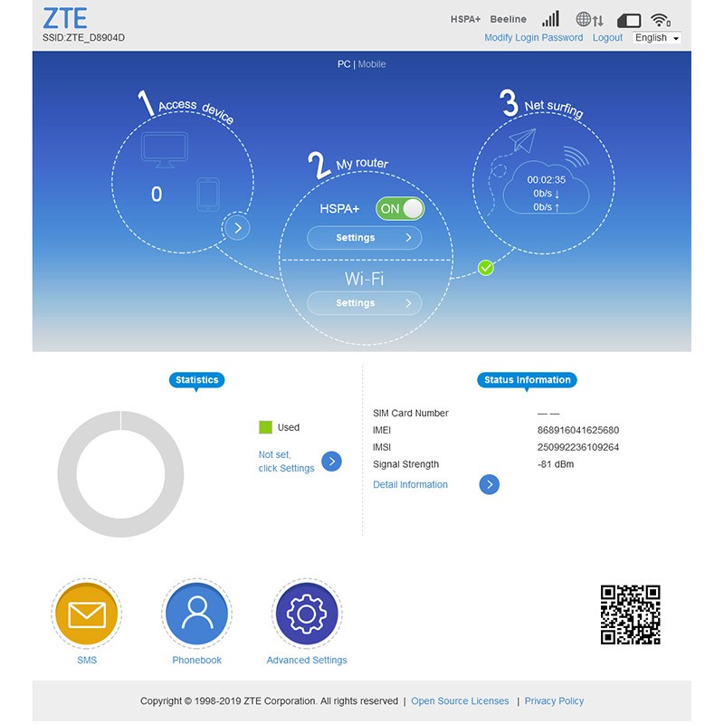 Универсальный модем, входящий в набор, снабжен обновленной прошивкой HiLink, которая не требует установки программы (Dashboard) на ваш ПК.