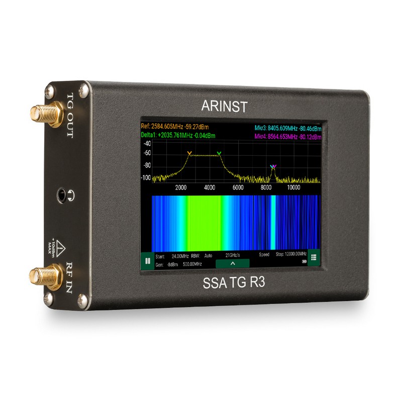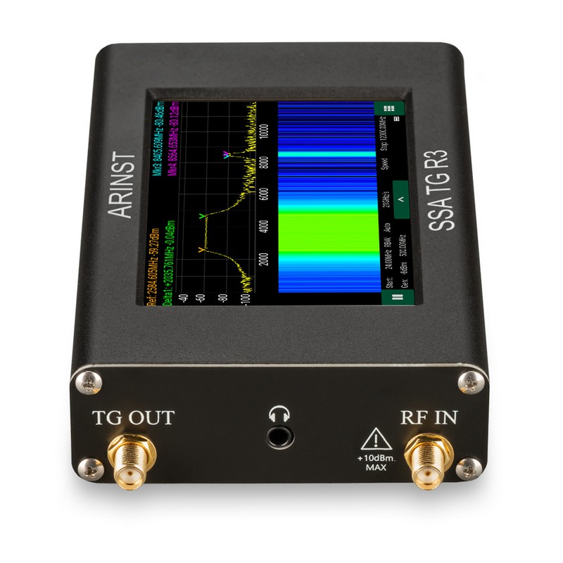Arinst SSA-TG R3 – это портативный панорамный анализатор спектра со встроенным трекинг-генератором и демодулятором, предназначен для отображения спектральных составляющих сигналов в диапазоне частот от 24 МГц до 12 ГГц. Высокая скорость сканирования дает возможность обнаруживать импульсные сигналы цифровых стандартов связи: Wi-Fi, 2G, 3G, 4G, LTE, CDMA, DCS, GSM, GPRS, ГЛОНАСС и т.д. Встроенный следящий генератор позволяет проводить измерения АЧХ пассивных или активных устройств, например, фильтров, усилителей. Программный демодулятор ШЧМ/ЧМ/АМ сигналов предназначен для прослушивания эфира и настройки аналоговых радиопередатчиков. Установка региональных частот покрытия сотовых операторов позволяет сопоставлять отображаемый сигнал с соответствующим оператором.
