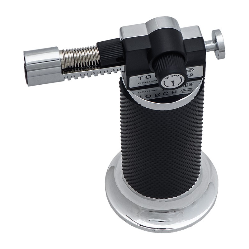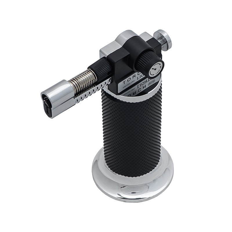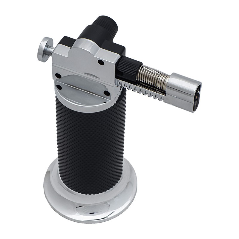 Регулировочное кольцо на дне рукоятки предназначено для управления напором газа. Также в нижней части ручки размещен клапан для заправки зажигалки. Переключатель «Lock Off» в верхней части рукоятки предназначен для блокировки устройства. Удобная клавиша запускает поток газа от баллона к соплу и активирует разряд пьезоэлемента (осуществляет поджиг газа).