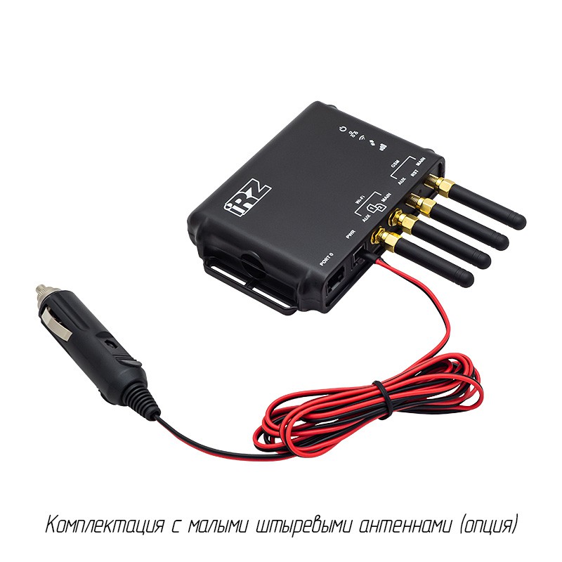Автомобильный комплект интернет-доступа состоит из 4G-роутера iRZ RL01w, набора антенн и кабеля питания от разъема прикуривателя. Оборудование практически не занимает место в салоне и может быть смонтировано за считанные минуты.
