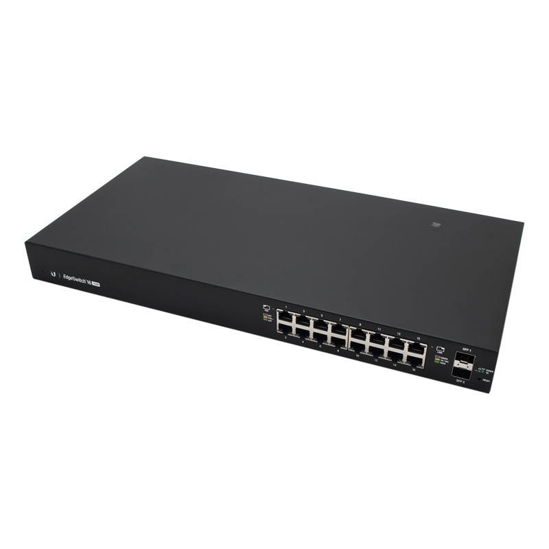 EdgeSwitch 16 от компании Ubiquiti — это высокоэффективное решение для обмена данными внутри локальной сети офиса или крупного бизнес-центра. Коммутатор имеет пропускную способность 18 Гбит/с и относится к классу сетевого корпоративного оборудования. Помимо 16 гигабитных Ethernet-портов, устройство имеет два SFP-разъема для оптических модулей с максимальной скоростью 1 Гбит/с. Поддерживается питание подключенных Ethernet-устройств по технологии PoE (стандарт 802.3af/at или Passive РоЕ 24В).